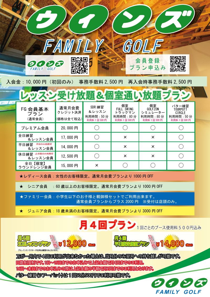 ウィンズFAMILY GOLFの会員プランやご案内の載っているパンフレットのWEB版です。