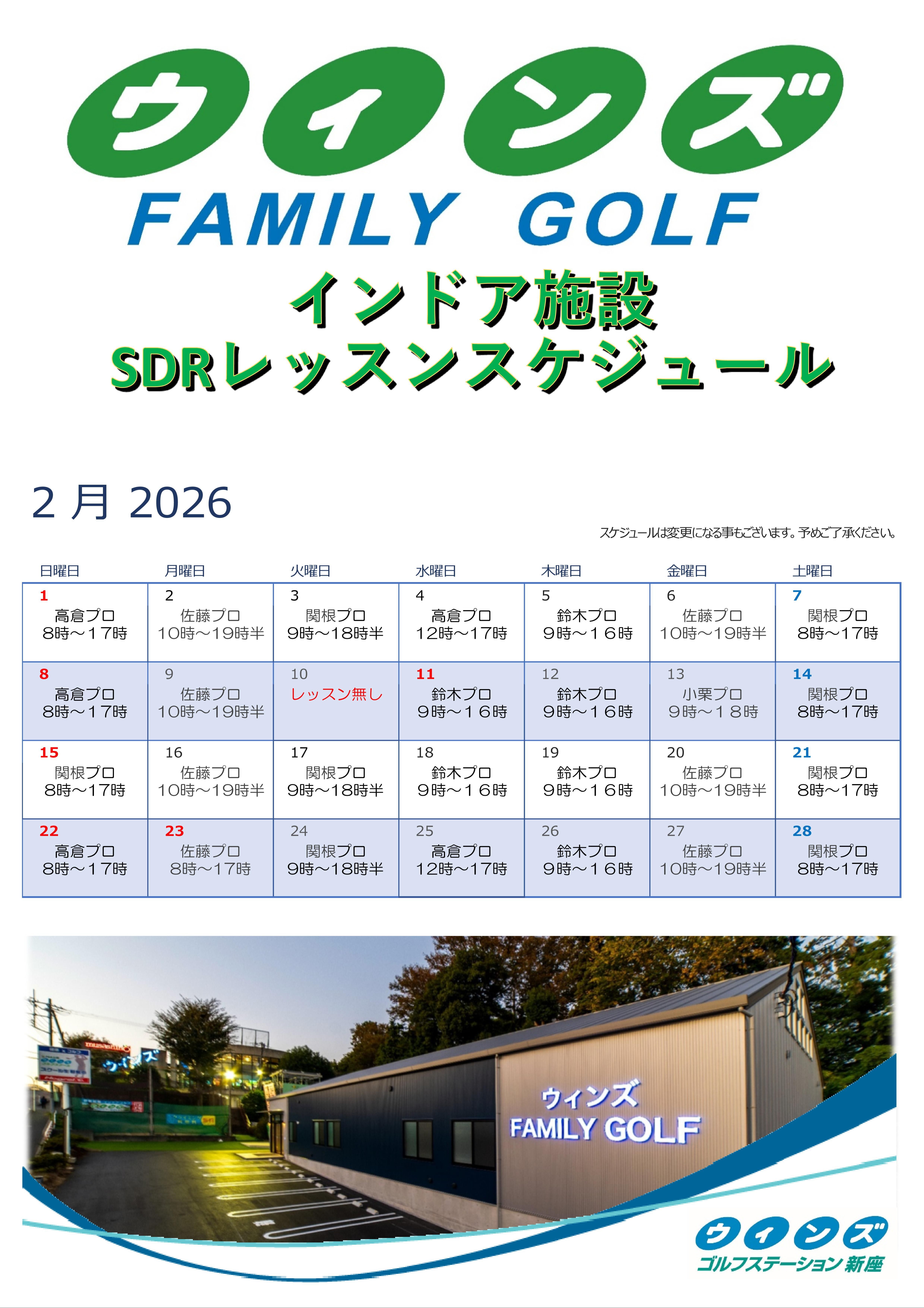 2月レッスンスケジュール